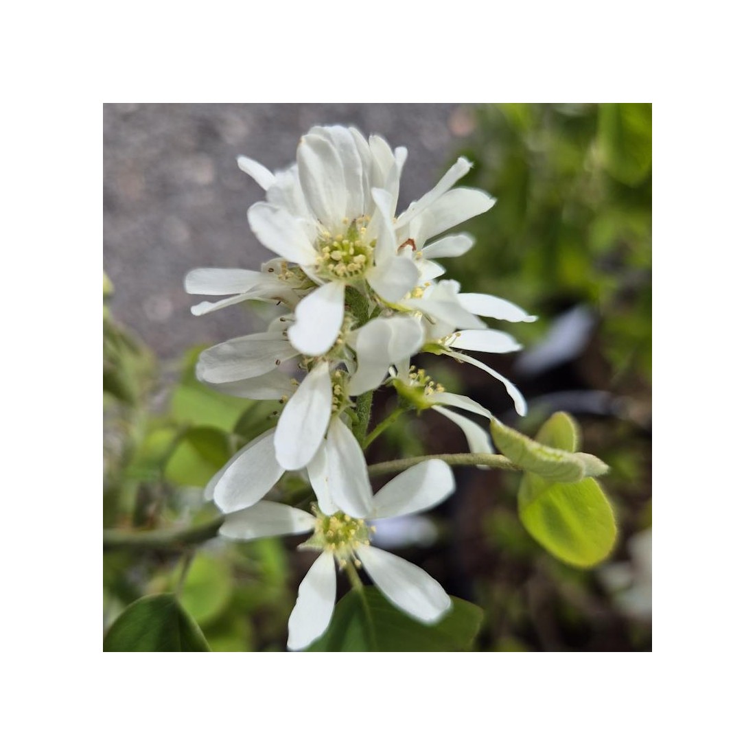(Service Berry) An unusual shrub or eventually very small tree in the UK grown primarily for it display of large, edible & sweet, smokey-blue/black fruit each June. These fruit can be eaten straight of the tree or used in cooking, jams or jellies.
