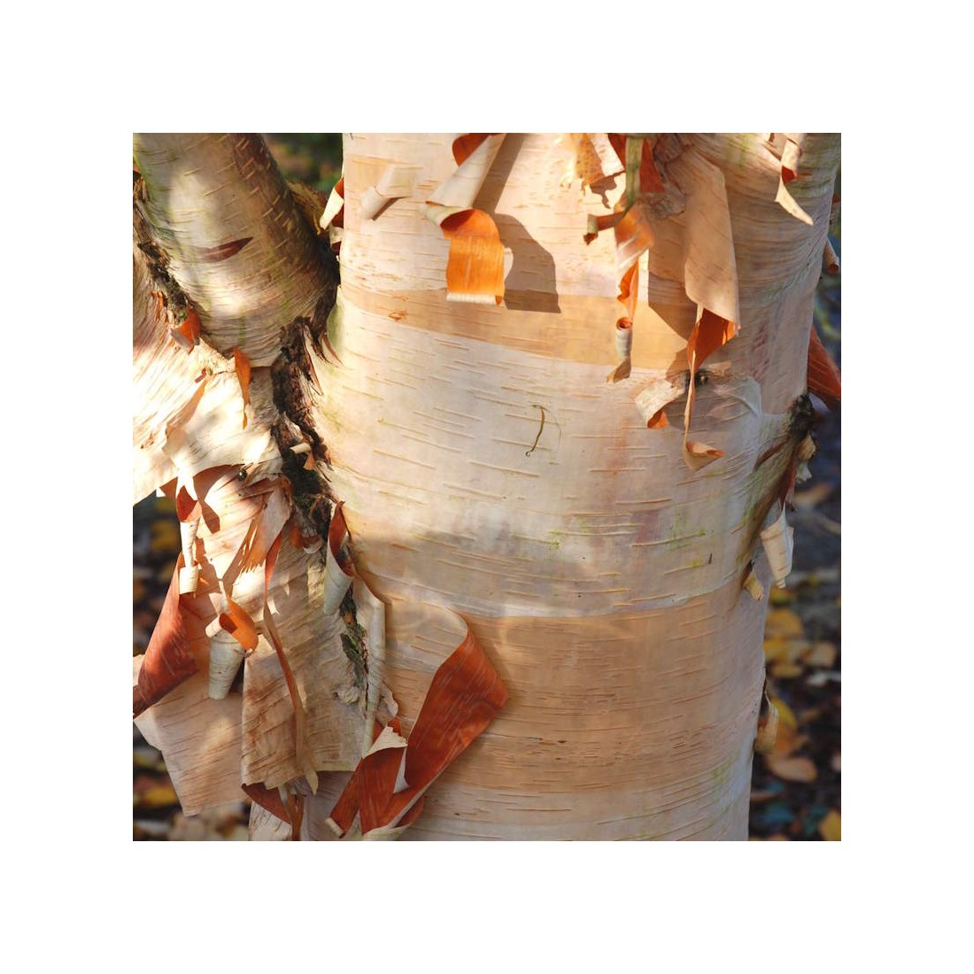 Lovely, medium sized tree with dark chestnut-red bark when young which slowly peels to reveal a creamy pink and then white trunk. A specimen of Betula albosinensis 'Fascination' in our garden also has an excellent display of long catkins in spring and handsome golden yellow autumn colour.