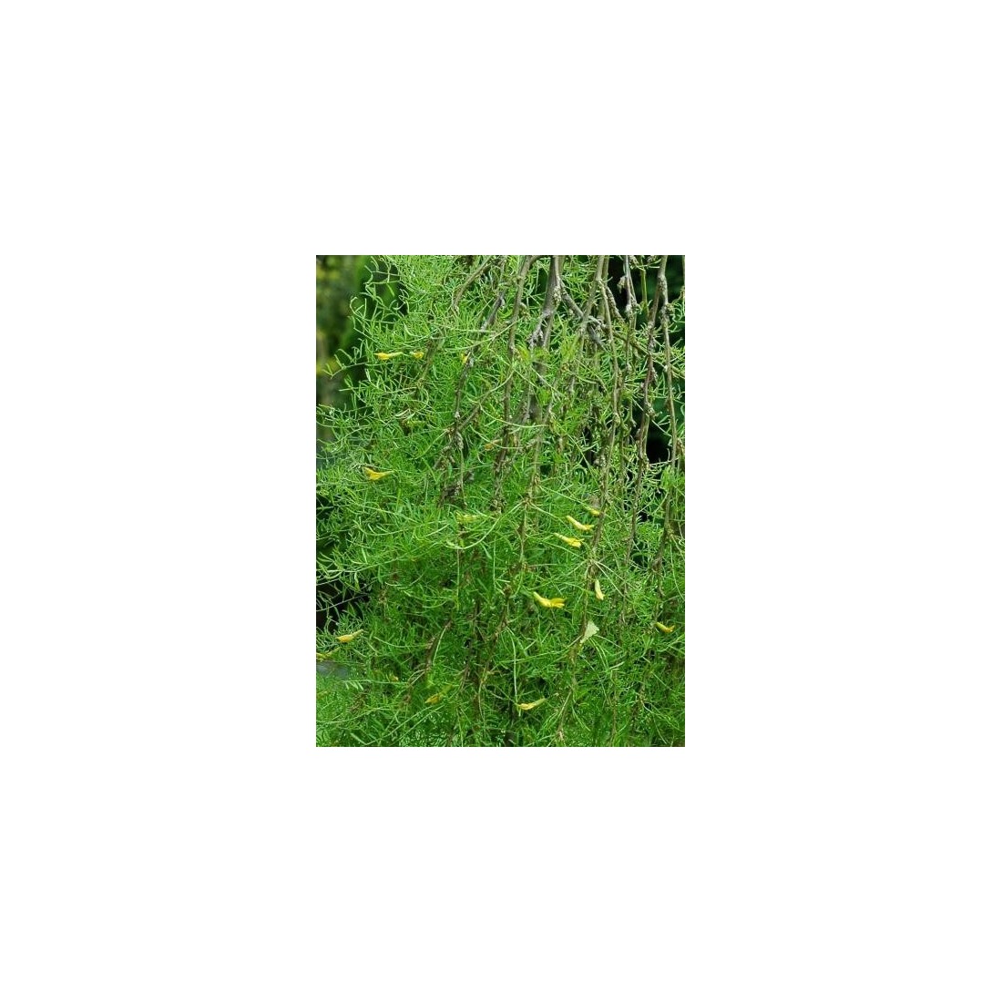 (Dwarf Weeping Pea Tree) Caragana arborescens 'Walker' is an unusual, slow growing, stiffly weeping, dwarf tree with bright green, delicate green leaves and masses of bight yellow, pea-like flowers in late spring.