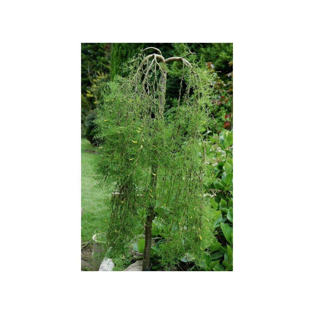 Caragana arborescens 'Walker' is an unusual, slow growing, stiffly weeping, dwarf tree with bright green, delicate green leaves and masses of bight yellow, pea-like flowers in late spring.