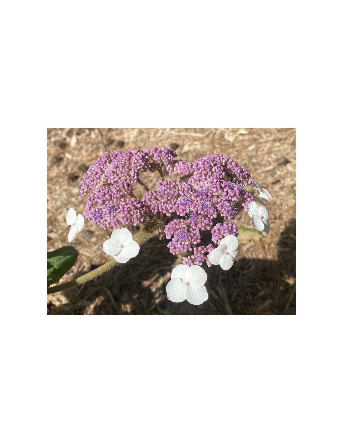 New to us, Hydrangea aspera 'Goldrush' is a lovely deciduous shrub with large soft golden leaves in spring, gradually turning pale green as they age into the summer. The leaves turn yellow and orange in a good autumn before falling. Clusters of pretty lavender-blue lacecap-like flowerheads surrounded by white florets appear once established in mid Summer.