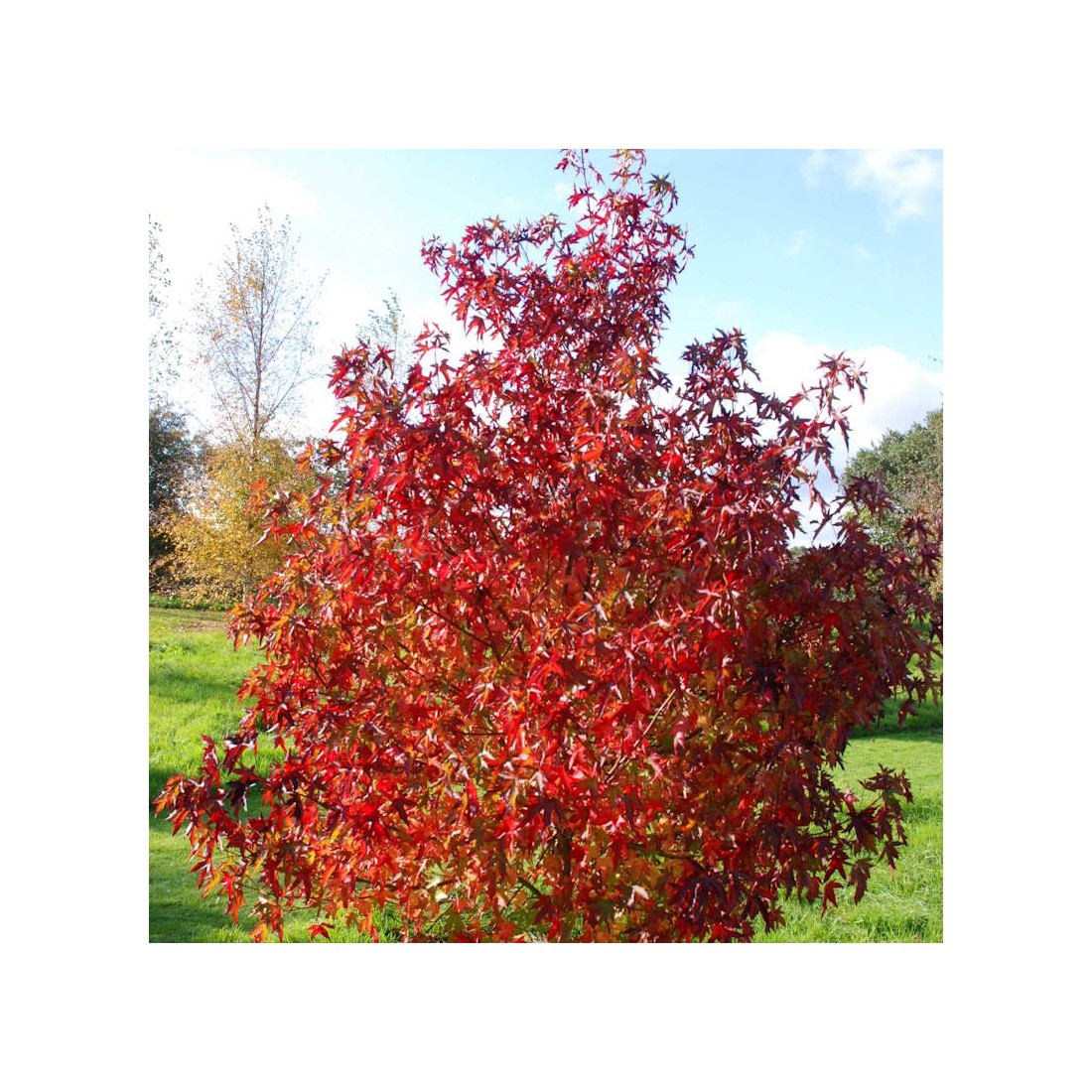 - Notes: The autumn colour of individual plants will vary according to weather and in particular the pH of your soil. The best, most vivid colours will occur in lime-free or acid soils. A liberal annual application of flowers of sulphur around the base of a Liquidambar, at a rate of up to 2 oz. per square yard on neutral or slightly alkaline soils will slowly lower the pH and intensify the autumn colour!