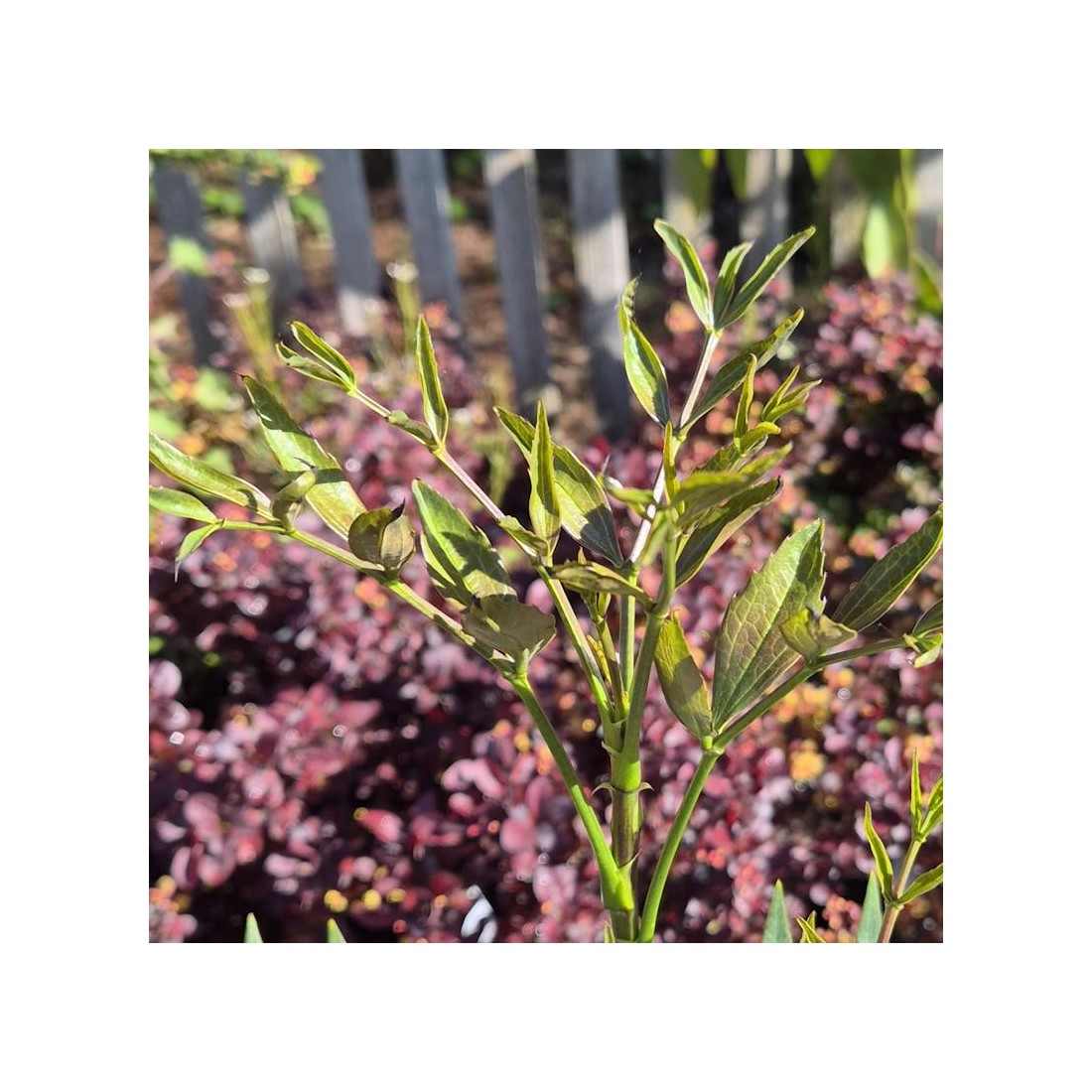 An unusual and upright, small to medium sized shrub with elegant, pinnate (feather-like) dark green summer leaves which are bronze-green in colour when they emerge in Spring.