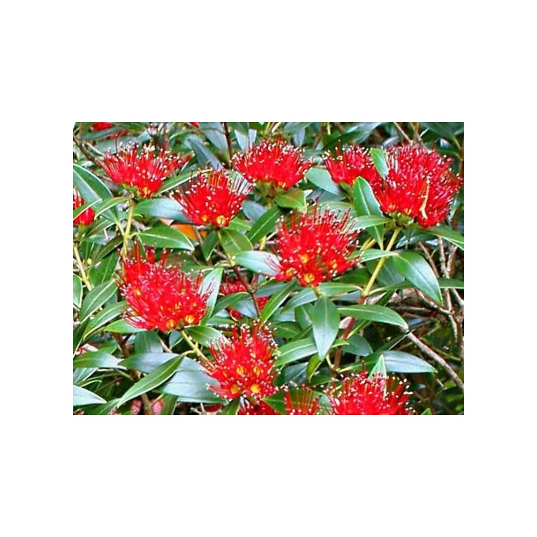 An evergreen shrub native to New Zealand with coppery coloured young leaves which turn dark green once mature and masses of vivid scarlet flowers in summer.