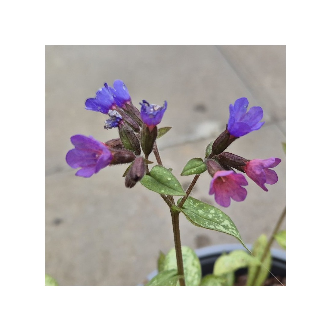A shade loving, clump forming perennial with handsome lance-shaped silvery grey leaves with pretty pink & blue flowers on short stems in Spring. The eye-catching, variable leaves can be mottled with silver spots or sometimes edged in green.