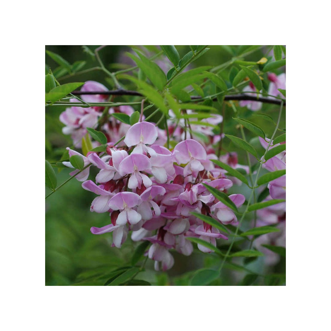 (Rose Acacia Tree) A beautiful small tree originally raised on Hillier's Nursery in the 1930's, Robinia x slavinii 'Hillieri' has pretty, slightly fragrant, pale-pink flowers borne in abundance in early summer. These flowers look a little like those of a Wisteria and hang from the branches, contrasting beautifully with the delicate, pale green, pinnate (feather-like) leaves.