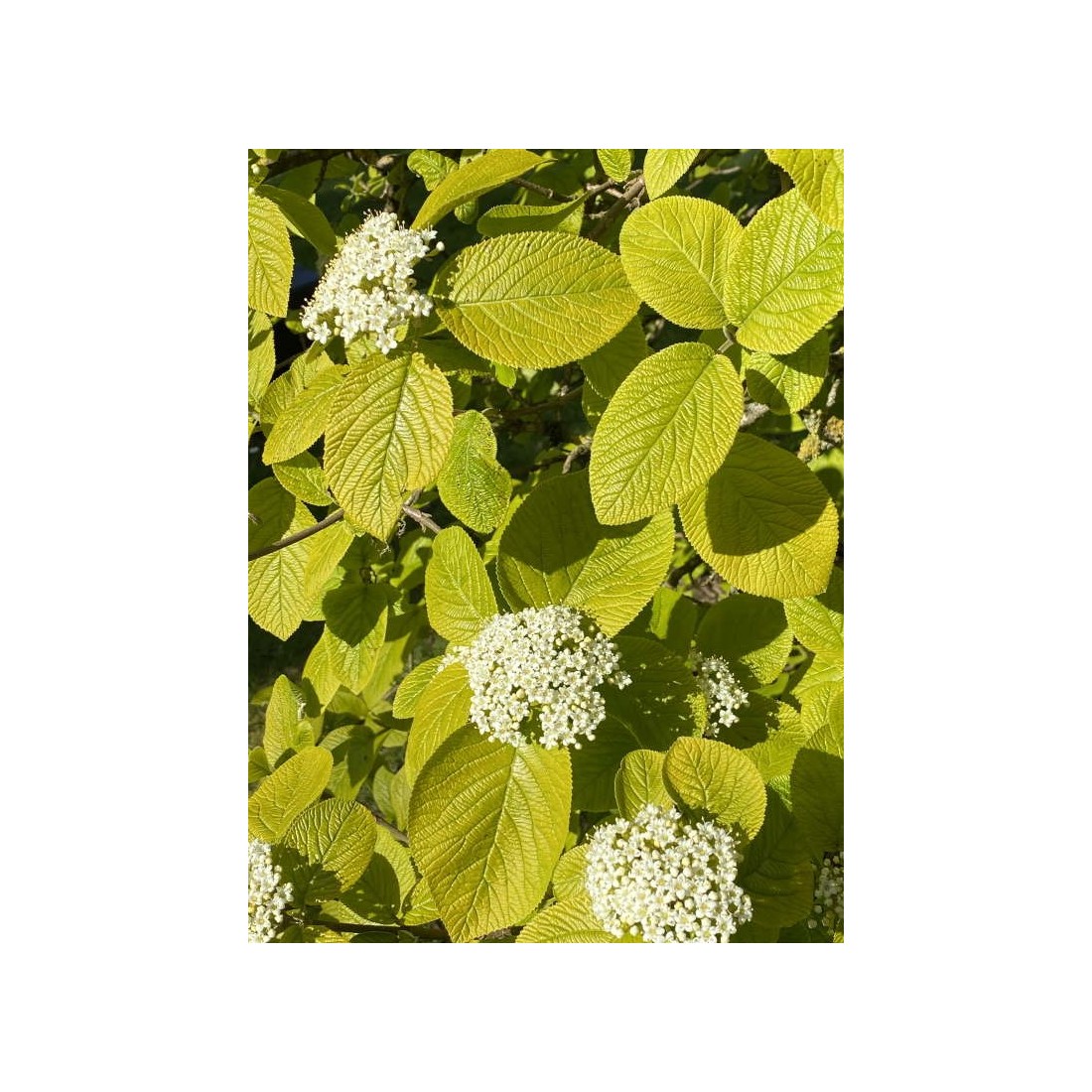 A delightful but often overlooked garden shrub, Viburnum lantana 'Aureum' has glorious, soft-golden leaves in late spring and pretty heads of creamy-white flowers in late spring. These flowers can be followed by vivid pinkish-red fruit on an established plant. In our opinion it makes a great border plant for brightening lightly shaded areas of a garden!